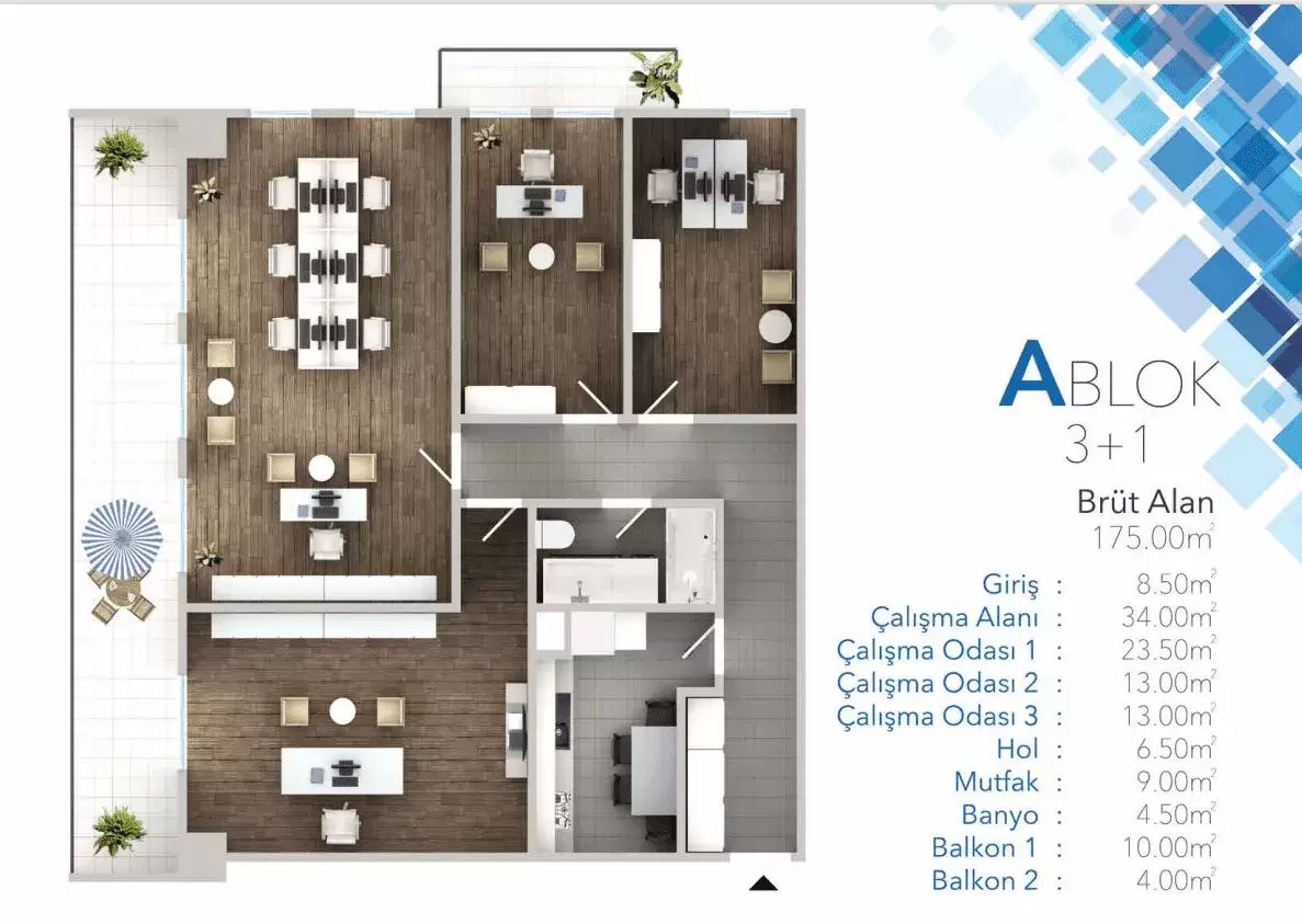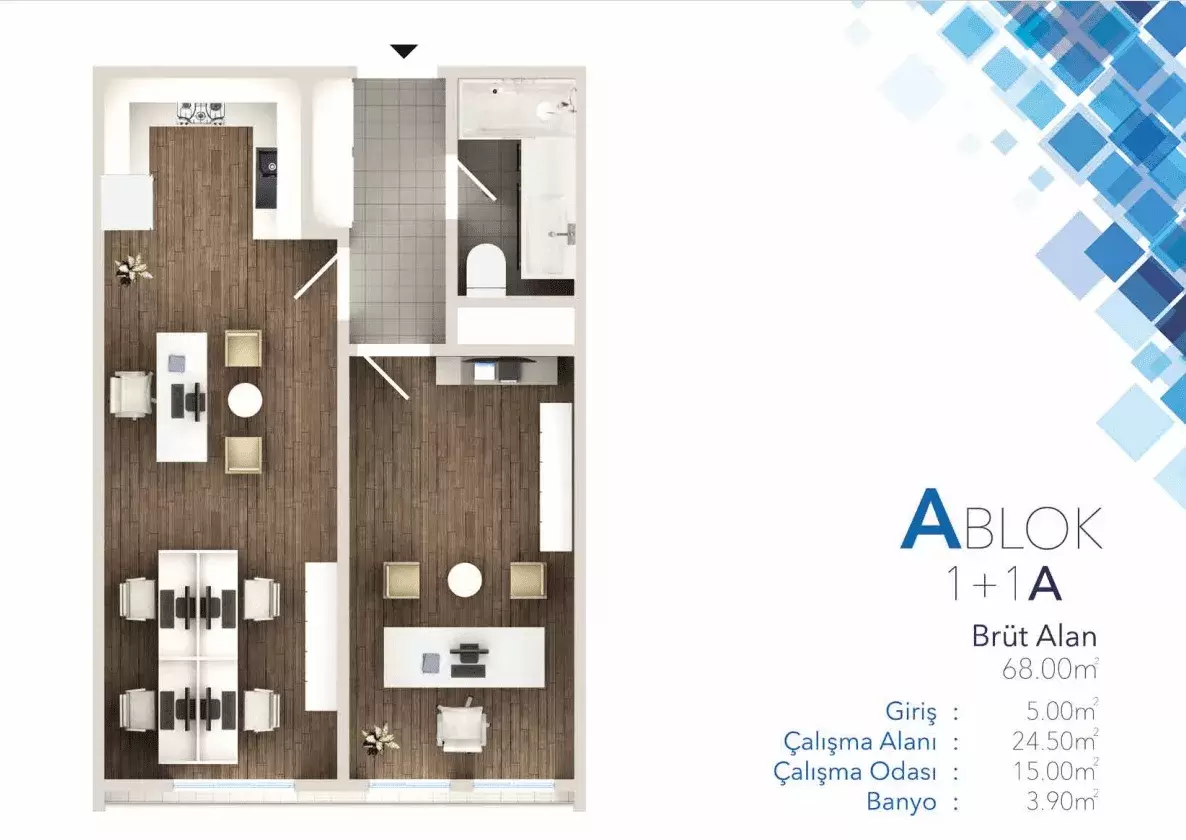 Projede modern mimari ve geleneksel dokunuşlar bir araya getirilmiş, kullanım rahatlığı ve modern görünüme önem verilmiştir. Ayrıca, projede home-ofisler de yer alarak ticaret merkezi çalışanlarına ferah bir yaşam alanı sağlanmaktadır.